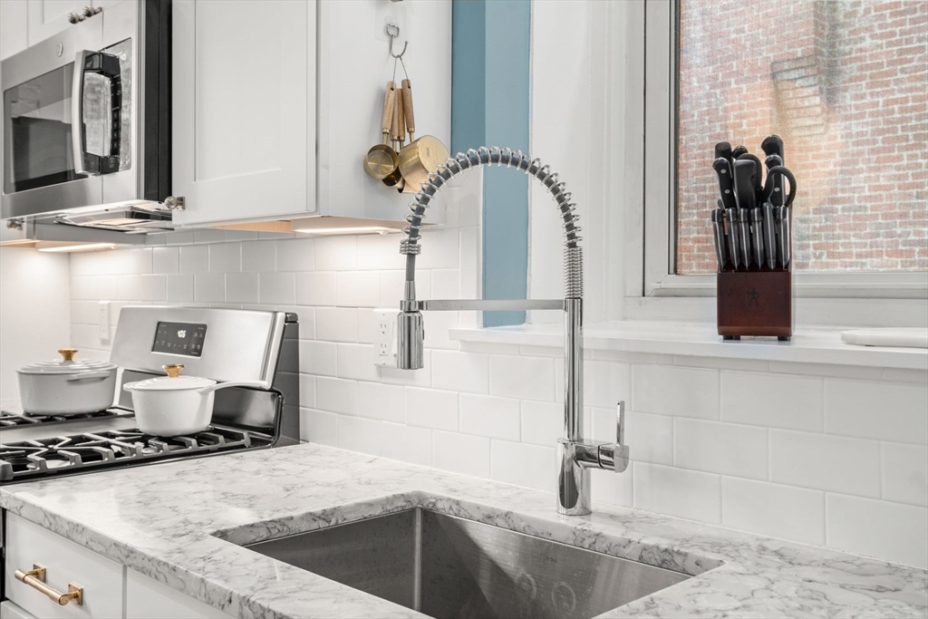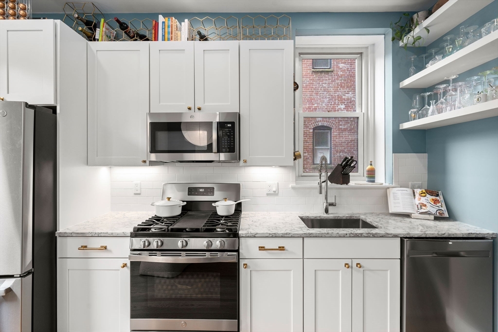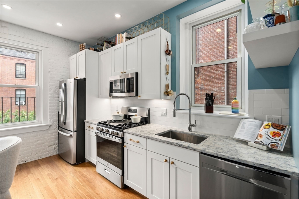 Resting for summer- still available. Call agent. Experience classic Back Bay charm with modern luxury in a boutique, professionally managed elevator building. This beautifully updated home features a brand-new designer kitchen by MF Reynolds with quartz countertops, custom cabinetry, and high-end appliances, seamlessly flowing into a gracious dining area. The living space offers exposed brick, a stunning fireplace with detailed mantle, and curated finishes from lighting to hardware. Enjoy full-size in-unit laundry, soaring ceilings, and abundant natural light. The spacious primary bedroom offers comfort and privacy, while the second bedroom features a lofted space for added versatility. A sparkling new bath completes the interior. Ideally located on one of Back Bay's most iconic streets, just steps from Newbury Street, the Public Garden, and Copley Square. A rare opportunity to own a refined home in a premier location. Building upgrades include recent repointing and new boiler.