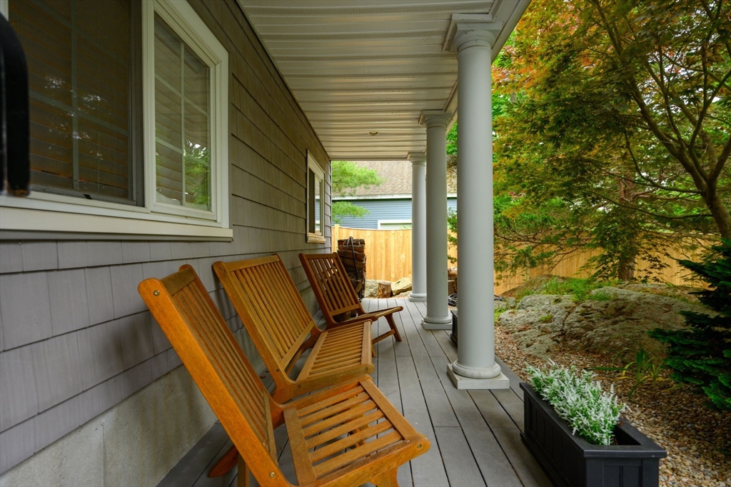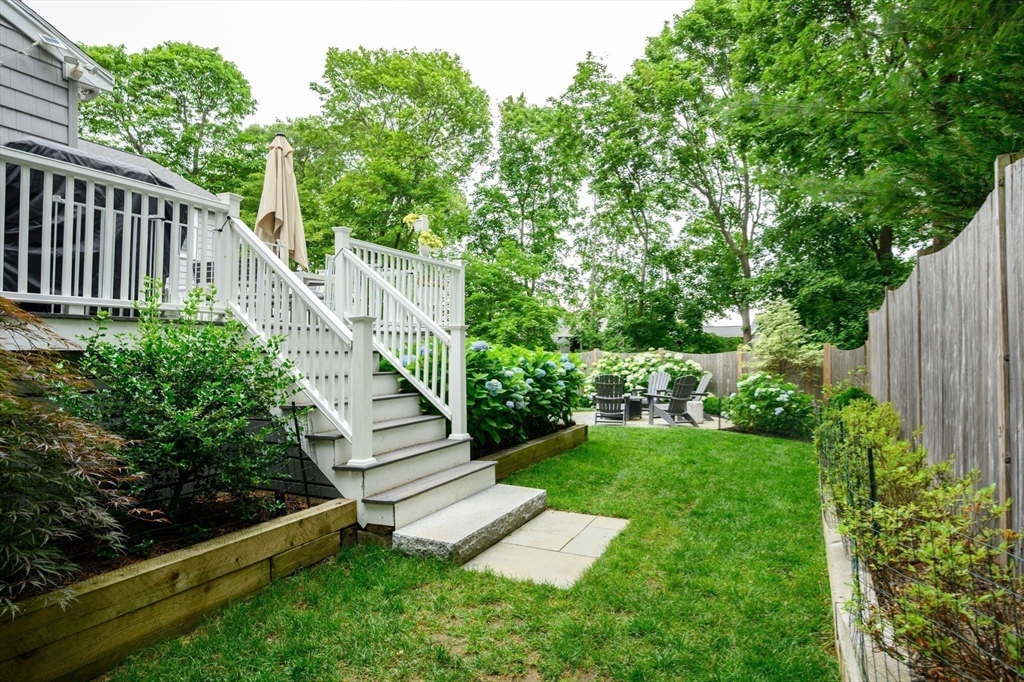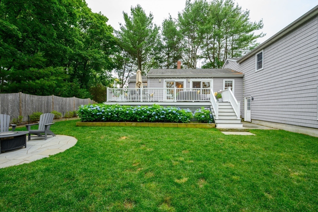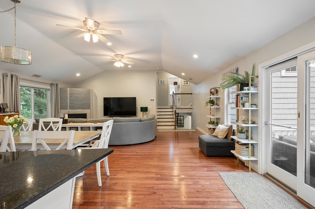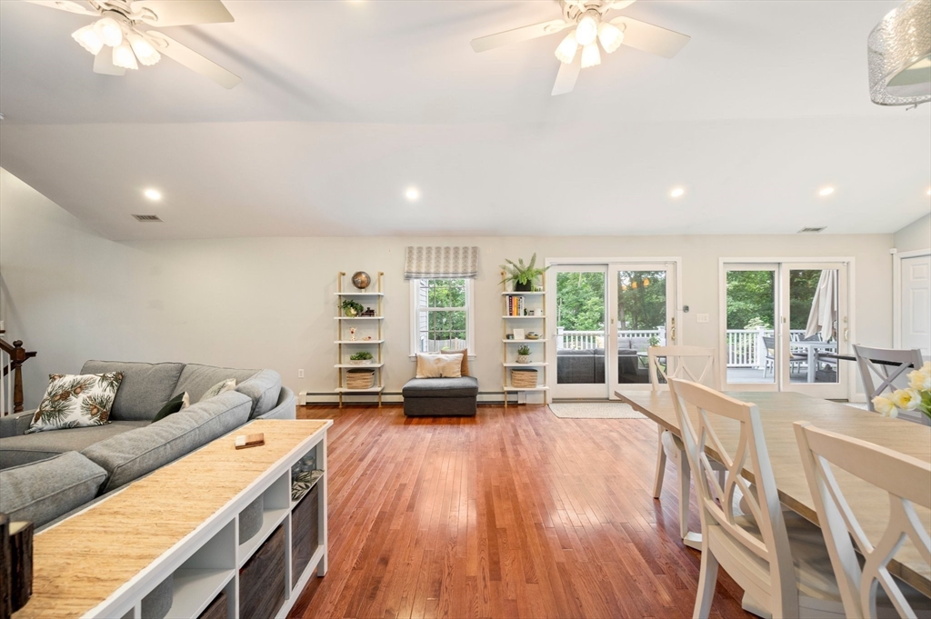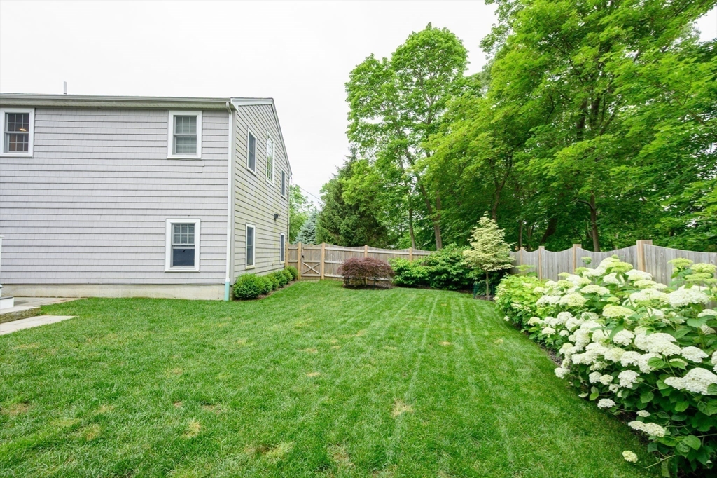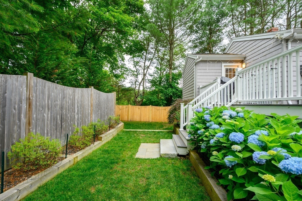 Tastefully updated colonial in Hingham Square and enhanced with a private retreat lot! This home has been transformed to today's lifestyle with farmer's porch on the front entry and an open concept dining/living room with gas fireplace and adjacent kitchen with white cabinets/granite counters and stainless appliances. Main floor also features a walk-in pantry and powder room. There is a versatile floor plan as seller's 4th bedroom can easily convert to family room or home office if desired. Upper floor includes a master suite with its own recently renovated bath and walk in closet as well as 2 additional bedrooms, family bath and laundry room. 2 car attached heated garage (rare in this part of town), central air, large expansive deck, recently enhanced and expanded professionally designed lawn and gardens. Town sewer/water. Walk to restaurants, shops, movie theater. Top rated Hingham Schools. Train 1 mile from home, commuter boat 1.5 miles. Enjoy urban amenities in Hingham Square!