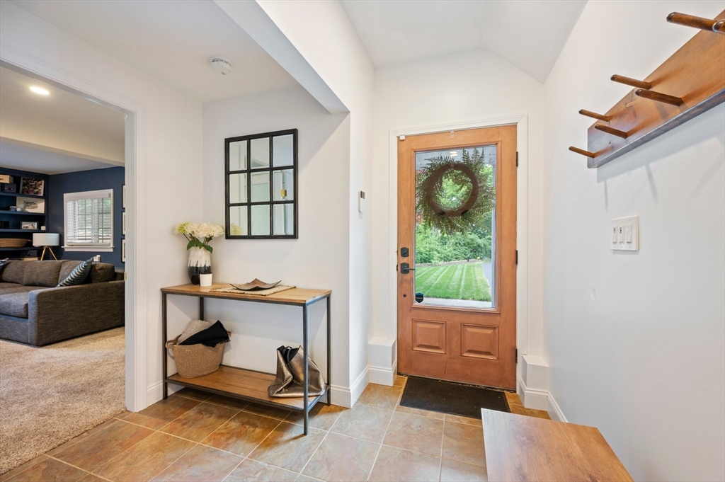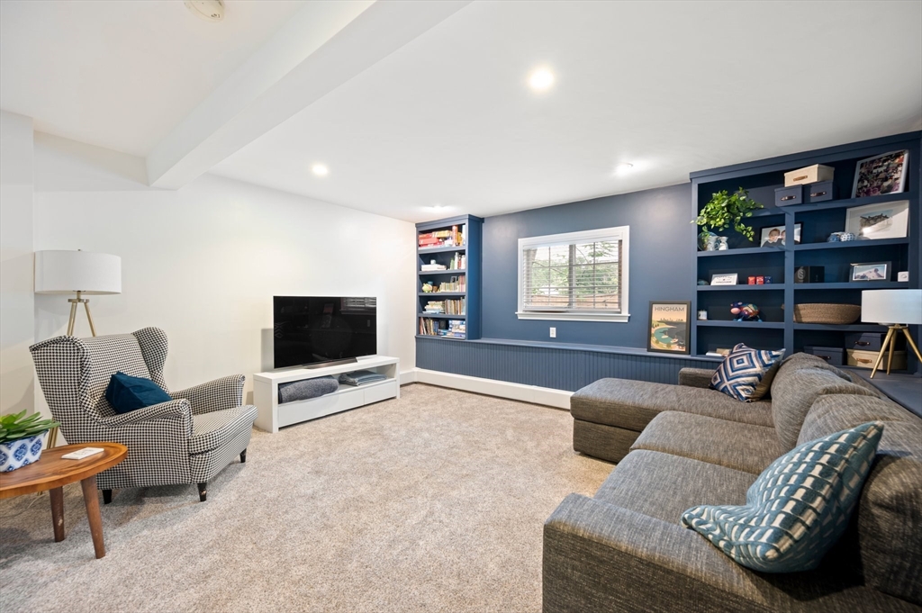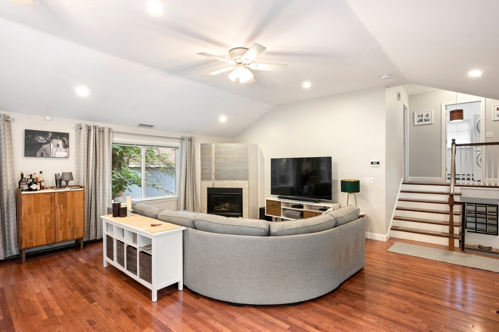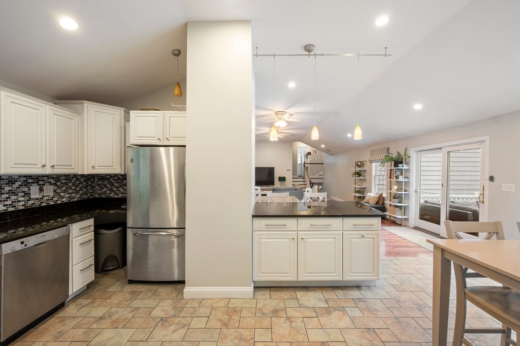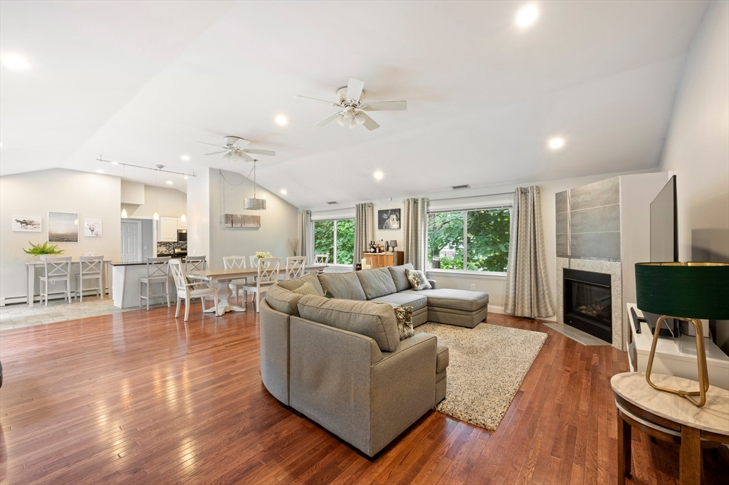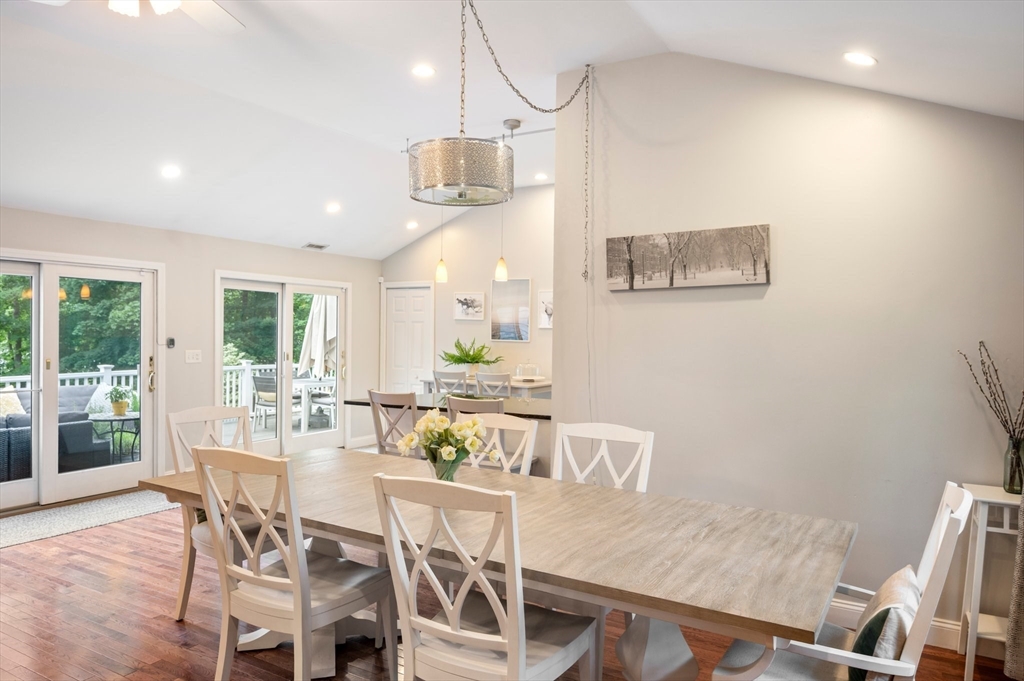 Tastefully updated colonial in Hingham Square and enhanced with a private retreat lot! This home has been transformed to today's lifestyle with farmer's porch on the front entry and an open concept dining/living room with gas fireplace and adjacent kitchen with white cabinets/granite counters and stainless appliances. Main floor also features a walk-in pantry and powder room. There is a versatile floor plan as seller's 4th bedroom can easily convert to family room or home office if desired. Upper floor includes a master suite with its own recently renovated bath and walk in closet as well as 2 additional bedrooms, family bath and laundry room. 2 car attached heated garage (rare in this part of town), central air, large expansive deck, recently enhanced and expanded professionally designed lawn and gardens. Town sewer/water. Walk to restaurants, shops, movie theater. Top rated Hingham Schools. Train 1 mile from home, commuter boat 1.5 miles. Enjoy urban amenities in Hingham Square!