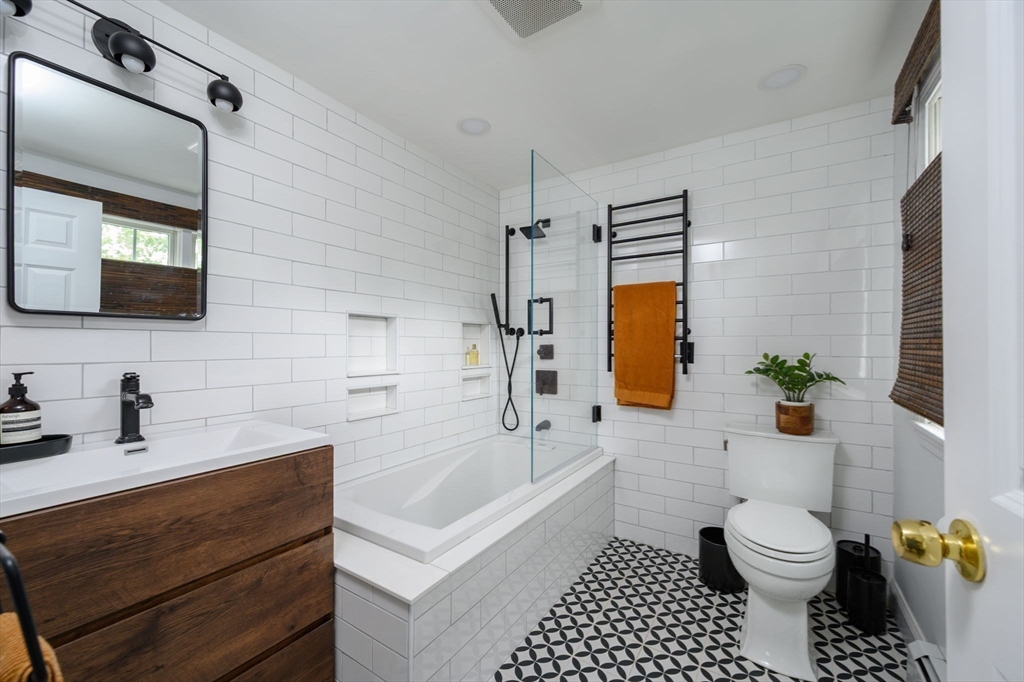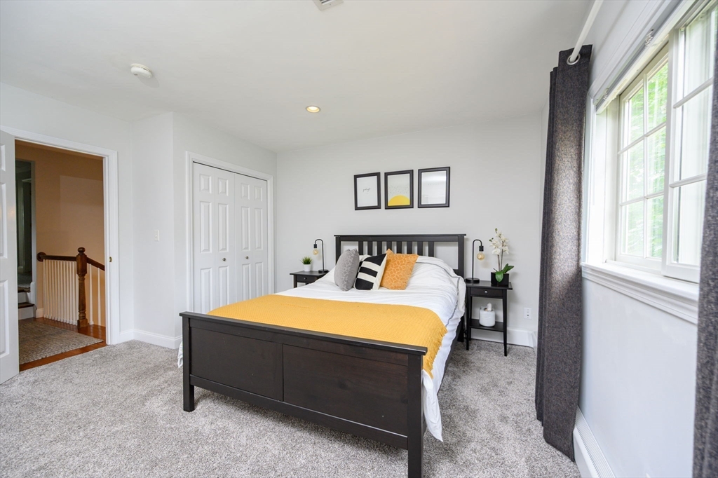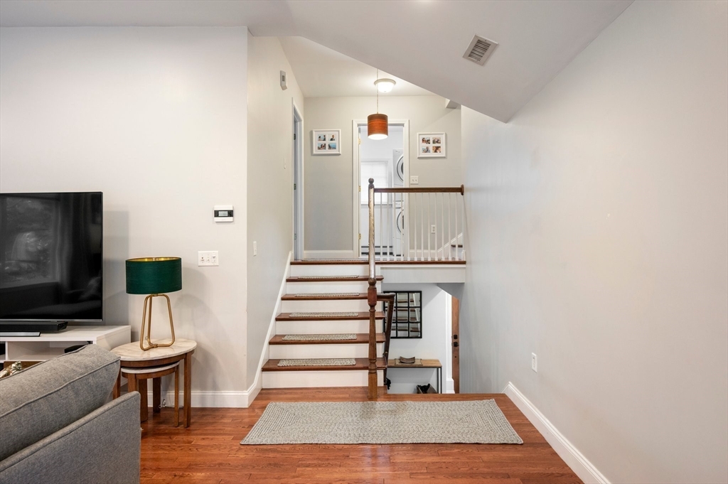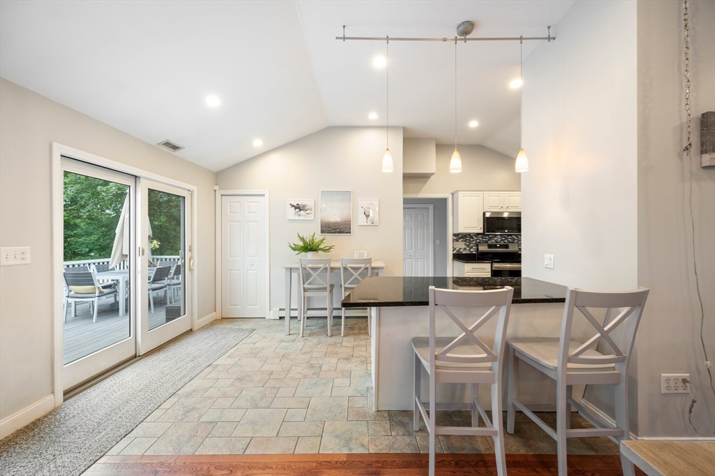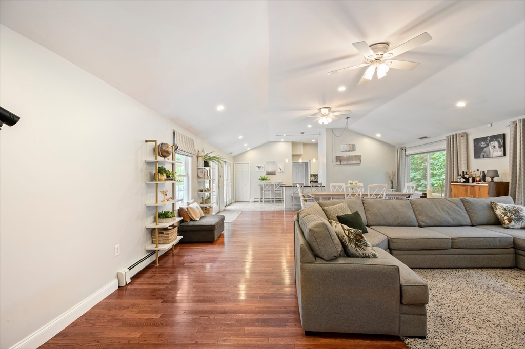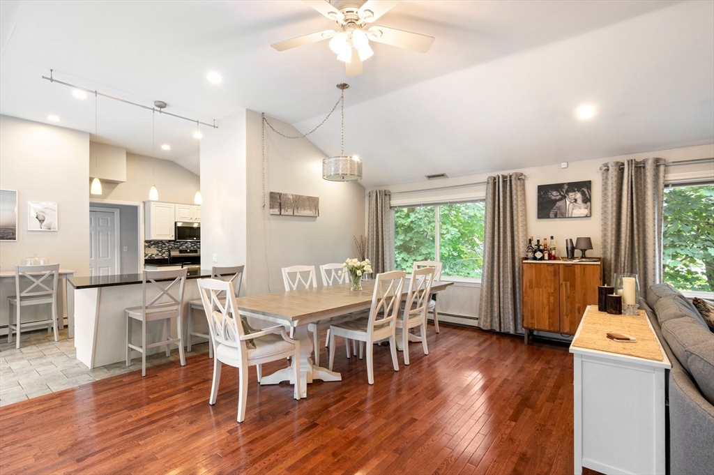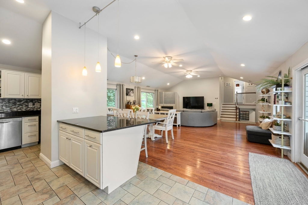 Tastefully updated colonial in Hingham Square and enhanced with a private retreat lot! This home has been transformed to today's lifestyle with farmer's porch on the front entry and an open concept dining/living room with gas fireplace and adjacent kitchen with white cabinets/granite counters and stainless appliances. Main floor also features a walk-in pantry and powder room. There is a versatile floor plan as seller's 4th bedroom can easily convert to family room or home office if desired. Upper floor includes a master suite with its own recently renovated bath and walk in closet as well as 2 additional bedrooms, family bath and laundry room. 2 car attached heated garage (rare in this part of town), central air, large expansive deck, recently enhanced and expanded professionally designed lawn and gardens. Town sewer/water. Walk to restaurants, shops, movie theater. Top rated Hingham Schools. Train 1 mile from home, commuter boat 1.5 miles. Enjoy urban amenities in Hingham Square!